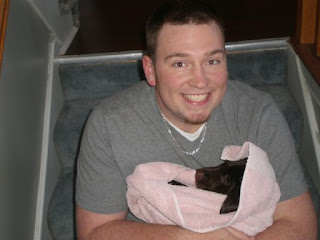 It is a Jensen family tradition to go ice fishing over President's Day weekend each year. Let's just say I am not a fan. I am not a big fan of fishing in general. Add in the fact that you have to sit out in the cold and very rarely do we ever even catch anything and it's just not for me. The first year we were married we went to Fish Lake. I was stuck inside building a scaled model for school the entire time but I didn't really mind. It got me out of sitting in the cold waiting for a stupid fish to take my bait. The next year we went to Flaming Gorge. The next year I humored Travis and bought a license and spent the day on the ice (I don't think I even put my line in the water once). Last year I got out of going entirely. So this year I made the trip up to the Gorge but decided I was just going to stay at the trailer the day they went fishing and watch the NASCAR race ( I know I'm a total hick but it was Daytona and I really like it). So you will not see me in any of the pics but it was a fun trip and Travis caught two Berbots. Trav's mom Paula was so excited. She had been talking all weekend about these fish that look like green eels but tasted just like lobster. She was determined to catch one. They waited until we got to Salt Lake to clean them though so they'd have running water. Because the fish were frozen, Trav had to soak them in water before they could be cleaned. When he took them out of the water there was a huge string of slime attached to fish that made Trav gag. The slim made it difficult to clean and Rick had a disgusted look on his face the entire time. After they got all the meat off my husband thought it would be cool to see what was in their stomachs. So he cuts it open and out comes an entire fish! Yuck!! Satisfied by his discover, Trav then stuffs the fish back in the stomach and then stuffs the entire thing back in the fish. Why? I have no idea. Needless to say none of us are too excited to taste the fish after the cleaning experience. So much for "the poor man's lobster." Here's Trav with is first catch of the day. (I think this is the first fish I've seen anyone catch at the Gorge. I was convinced they didn't exist there. Burbots aren't native there though so they don't count)